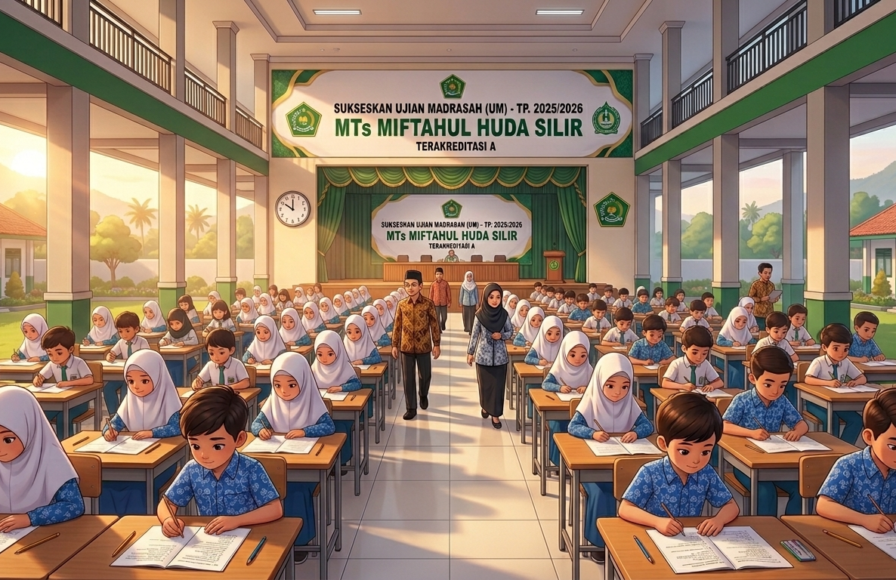 “Sehubungan dengan berakhirnya masa pembelajaran semester genap, MTs Miftahul Huda Silir akan menyelenggarakan rangkaian Ujian Madrasah (UM) bagi siswa kelas IX.